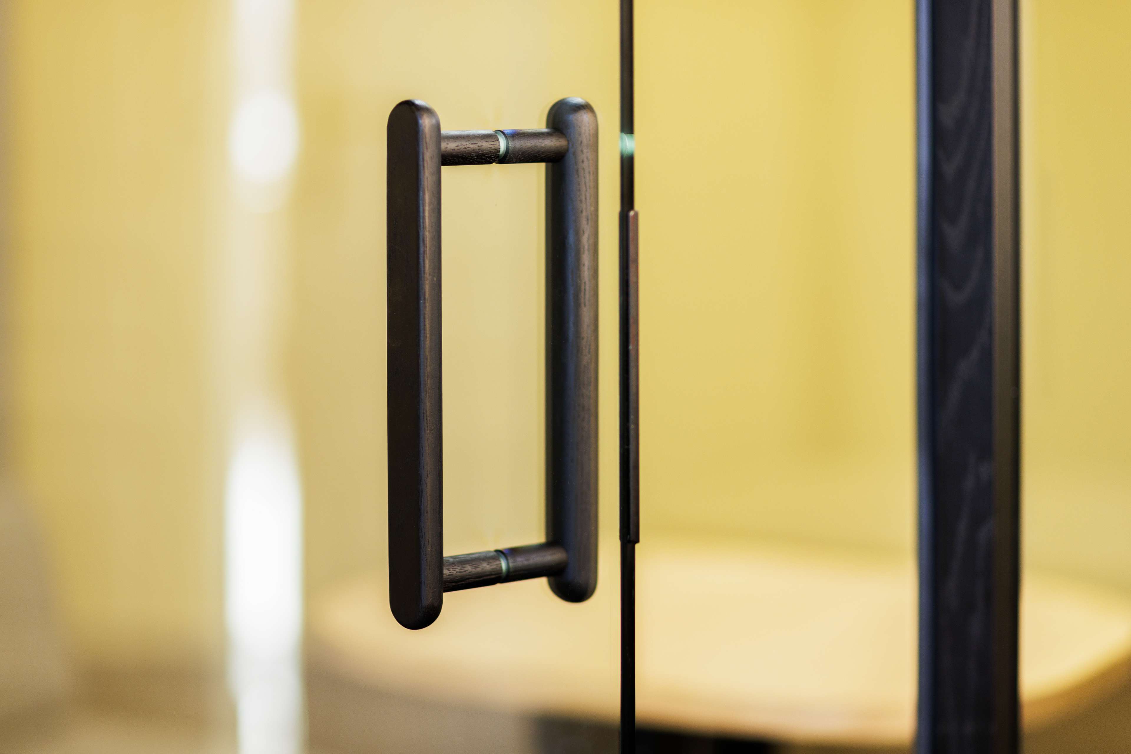 • Rahmen verglaster Wände und Türgriff