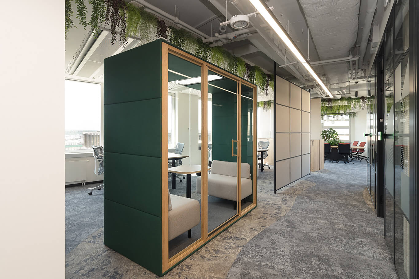 Die neue Generation passt nahtlos in jede Umgebung, wertet den Raum maximal auf schafft eine perfekte Umgebung zum Arbeiten und Entspannen. Mit präziser Handwerkskunst und zeitlosem Design bietet unsere Lösung fortschrittliche Akustik, hervorragende Belüftung und prokognitive Beleuchtung, welche die Müdigkeit reduziert und dafür sorgt, dass Sie sich erfrischt fühlen.